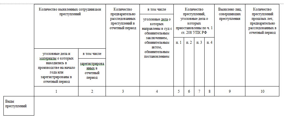 — № 1-ЕМ «Сведения об основных показателях следственной работы и дознания» (ежемесячная) 826 пунктов статистических показателей;