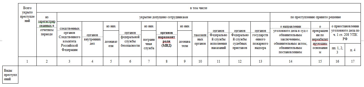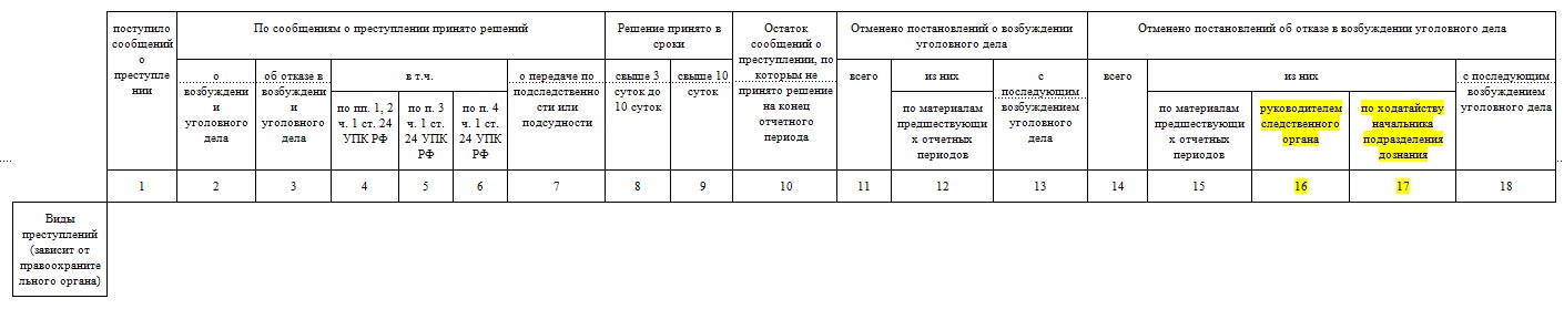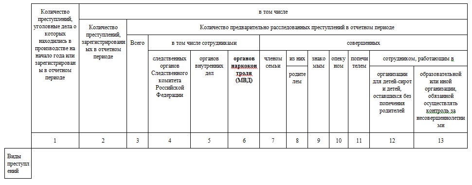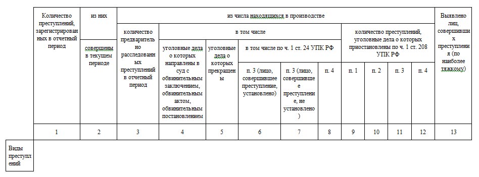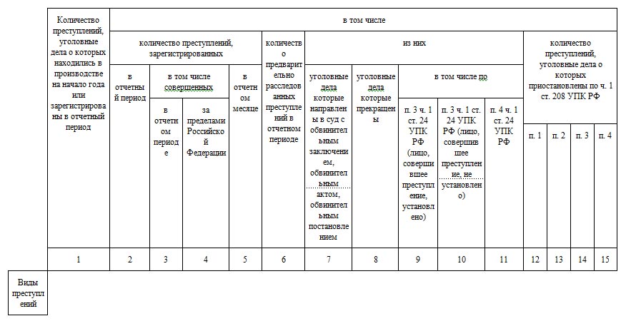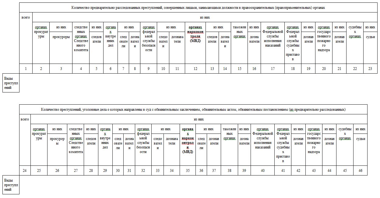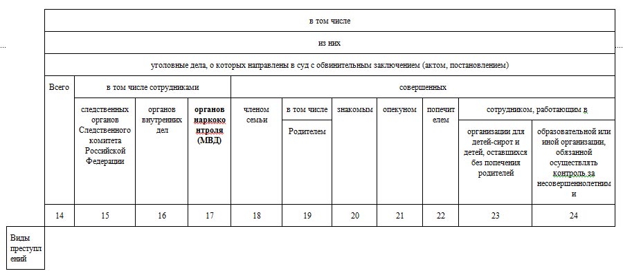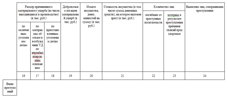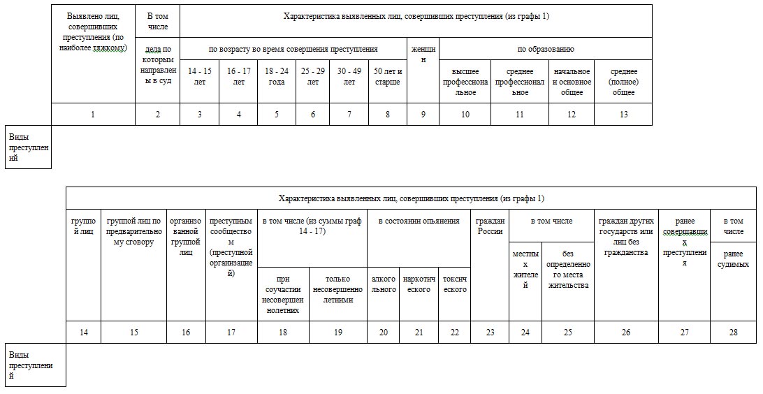 Раздел 1. Общие сведения о состоянии преступности (24 графы и 23 строки)
