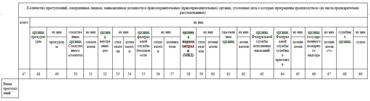 Раздел 7. Сведения о преступлениях, совершенных лицами, занимающими должности в правоохранительных (правоприменительных) органах (69 граф и 84 строки)