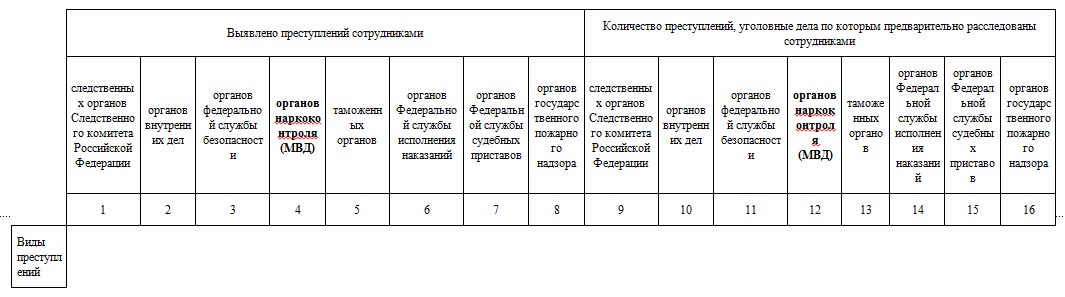 Всего данная форма, по сумме субъектов сбора содержит в себе 7382 пункта статистической информации, включая 378 пунктов предоставлявшихся упраздненной ФСКН России.