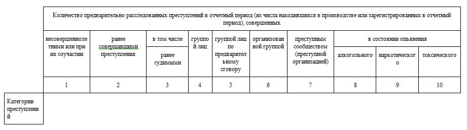 Раздел 4. Сведения о преступлениях, совершенных отдельными категориями лиц (по расследованным преступлениям) (10 граф и 5 строк)