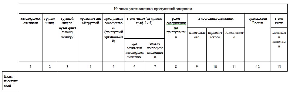 Раздел 2. Сведения о расследованных преступлениях, совершенных отдельными категориями лиц (13 граф и 123 строки)
