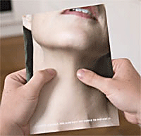 В Австралии борьбу с домашним насилием ведут весьма и весьма нестандартно. Для привлечения внимания людей к проблеме насилия над женщинами в семье рекламное агентство «BWM Sydney» выпустило буклет, обложку которого украшало изображение женской шеи. Когда человек берет буклет в руки, складывается впечатление, что он взял женщину за горло. Это, по мнению австралийских экспертов должно оказывать существенное психологическое воздействие на людей и тем самым привлечь широкое внимание к проблеме.