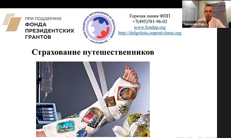 Кирилл Тимонин так же подробно рассказал о медицинском страховании, страховании банковских карт, страховании путешественников. В ходе семинара юрист ФПП активно отвечал на вопросы аудитории, а после завершения семинара провел ряд личных консультаций.