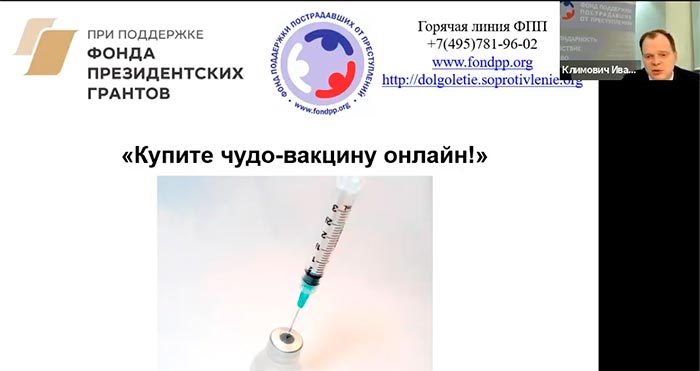 Эксперт Фонда Максим Пешков подробно остановился на мошенничествах, связанных с оказанием медицинских или псевдомедицинских услуг.