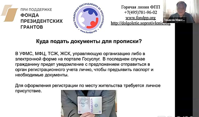 16 июня 2021 года Фонд поддержки пострадавших от преступлений провел вебинар «Регистрация по месту жительства: актуальные вопросы и проблемы» в рамках проекта «Право на безопасное долголетие» для ветеранских организаций и ЗелАО. Проект реализуется с ноября 2020 года на средства гранта Президента Российской Федерации на развитие гражданского общества в 2020 году.