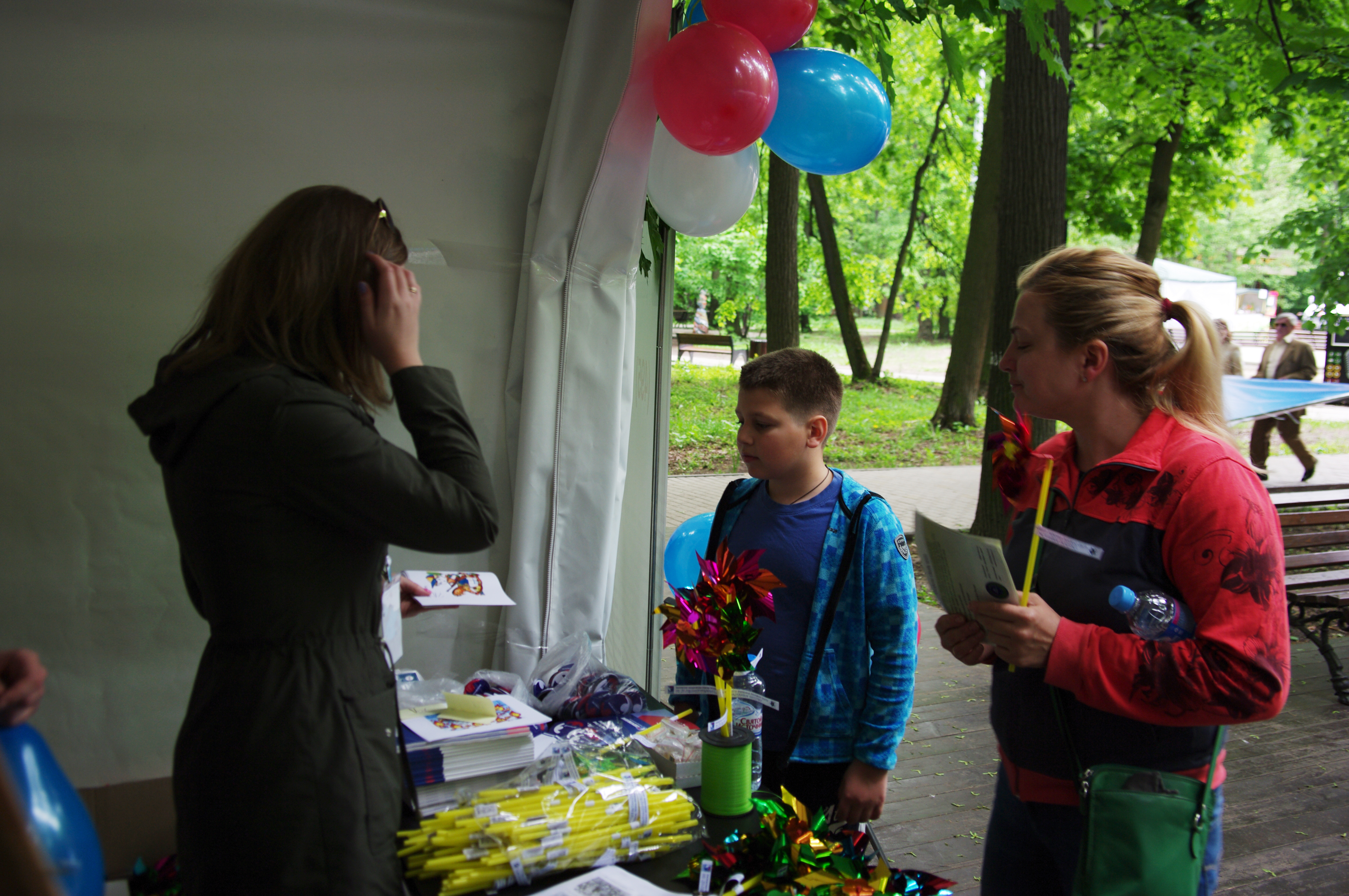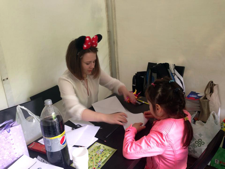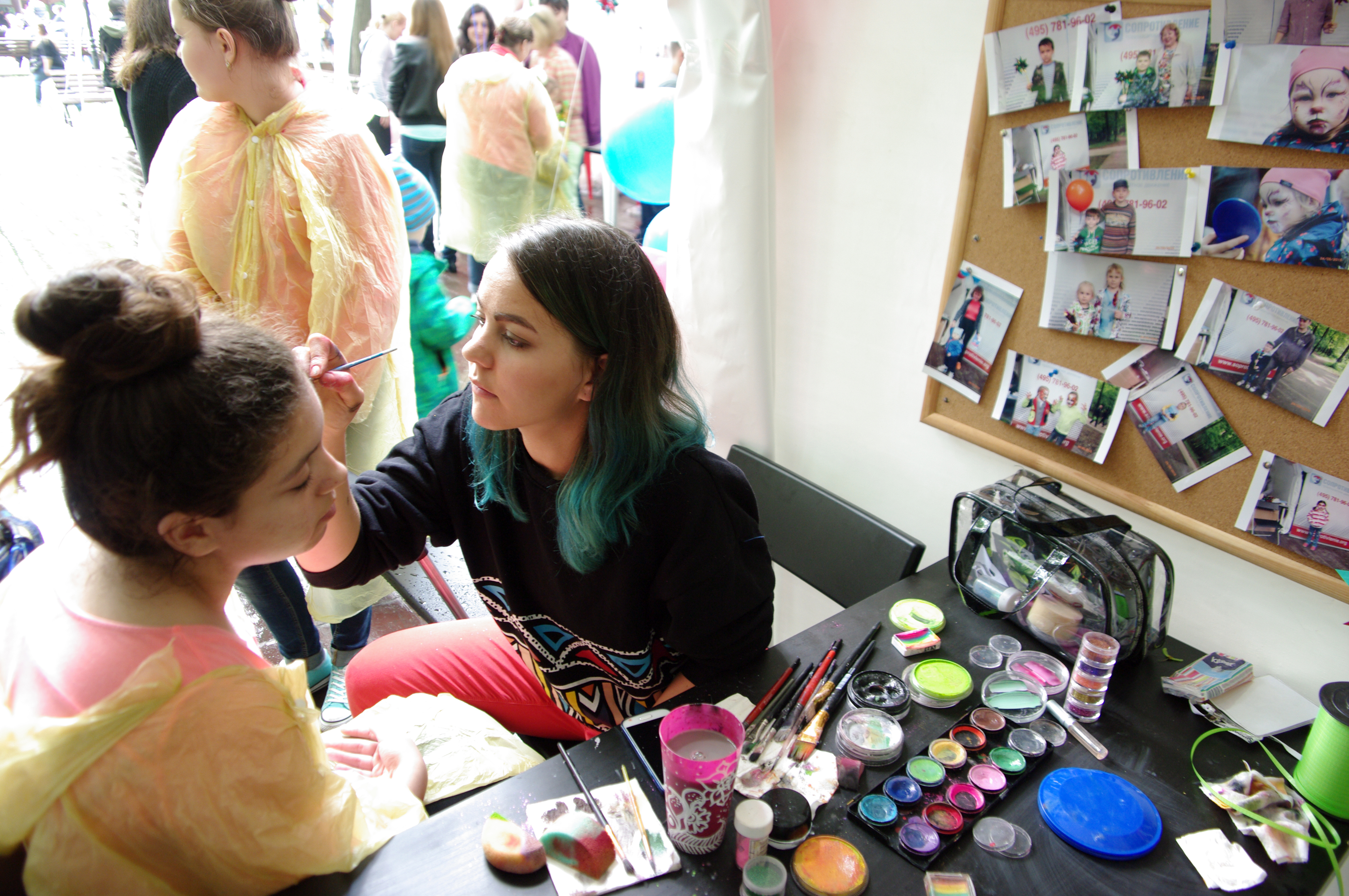 С самыми маленькими посетителями работали волонтеры «Сопротивления» Евгения Колесникова, Татьяна Антипенко и Дарья Волкова, девушки учили детей складывать журавликов из бумаги, рисовали их шаржи, а также разукрашивали лица малышей аквагримом. Все желающие могли сфотографироваться на фоне баннера организации и сразу же получить распечатанное фото на память от фотографа Романа Потапова.