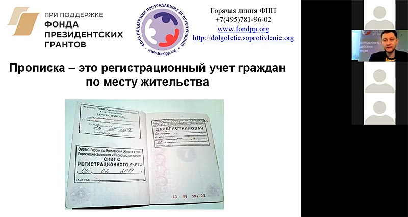 25 января Фонд поддержки пострадавших от преступлений провел вебинар «Регистрация (прописка) по месту жительства: вопросы и проблемы» в рамках проекта «Право на безопасное долголетие» для ветеранских организаций и ЦСО ТиНАО. Проект реализуется с ноября 2020 года на средства гранта Президента Российской Федерации на развитие гражданского общества в 2020 году.