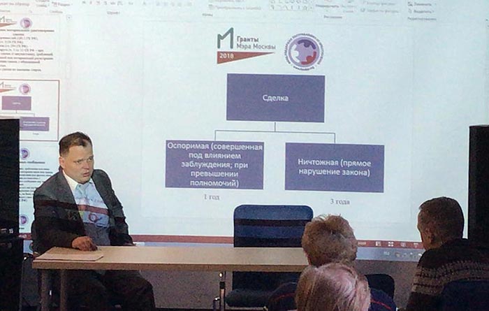 25 января 2019 года в ТЦСО «Щукино» прошел уже третий в 2019 году семинар в рамках проекта «Безопасное долголетие». Он был посвящен особенностям заключения гражданско-правовых сделок. Семинар провели юрист Фонда поддержки пострадавших от преступлений Тимур Чекув и эксперт Фонда Максим Пешков.