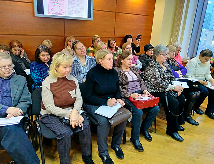 Юристы Фонда Тимур Чекуев и Александр Кошкин познакомили присутствующих с основными видами мошенничеств. К сожалению, в последние годы в Москве и в других регионах наблюдается резкий рост таких преступлений в отношении пожилых людей.