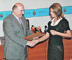 Пенсионерке вручили телевизор, мобильный телефон и грамоту. Не остались без подарков и два друга — Иван Мишин и Юрий Макаров. Они сами 17 июня на Михневской улице скрутили поджигателя автомобиля «ЗИЛ» и сдали его милиции. После награждения генерал-полковник милиции Владимир Пронин заявил, что пора уже поставить точку во всей шумихе вокруг поджогов машин.
