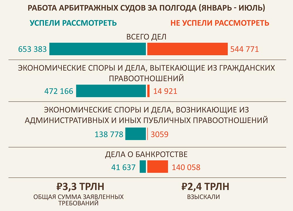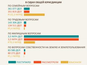 В суды общей юрисдикции за полгода поступило 9,2 млн дел гражданско-правового характера. По ним совокупно взыскали взыскали 1,7 трлн руб.