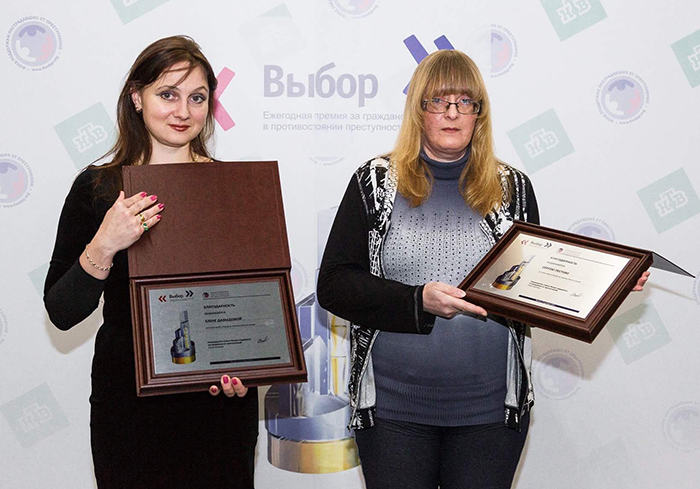 Одна из номинаций премии «Выбор» — за гражданские и общественные усилия в отстаивании прав жертв преступлений в России в этом году была вручена людям исключительно стойким. Трудно поверить, но стойкость человек может проявлять, просто занимаясь своим делом. 20 лет работы. 20 лет реализации программ помощи жертвам насилия в России. Сотрудники Национального центра по предотвращению насилия «Анна» и Независимого Благотворительного центра помощи пережившим сексуальное насилие «Сёстры» — герои, гражданский, социальный подвиг, которых отмечается каждый день на протяжении этих двух десятилетий. Работа этих людей в России исключительна в силу своей бескорыстности, профессионализма и преданности.